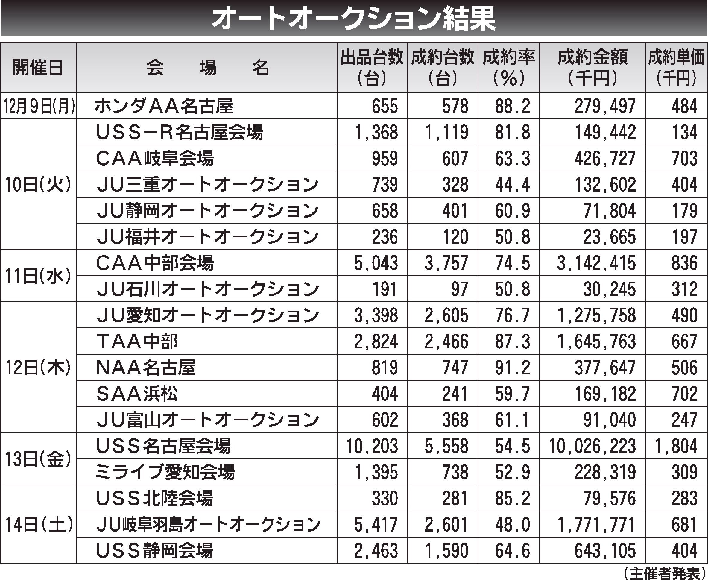 〈オートオークション結果〉中部地区 2024/12/9~14