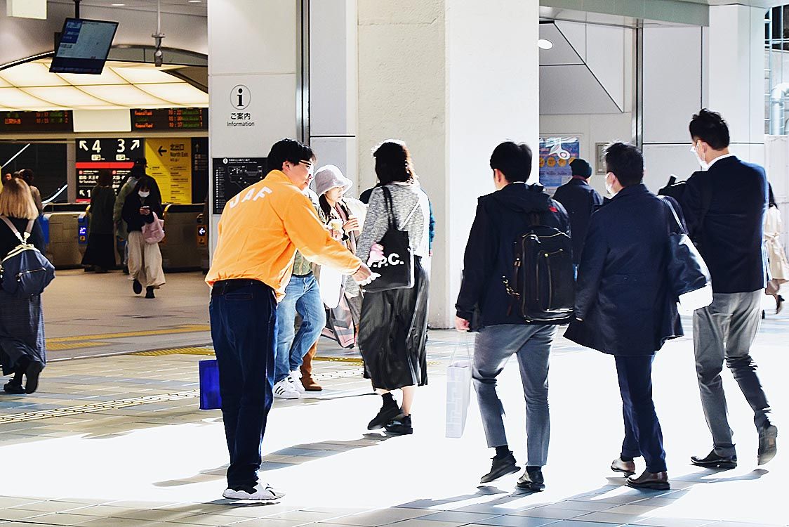 〈JAFが各地で税制改正要望街頭活動〉大阪支部はJR・京阪電鉄の京橋駅前で訴え