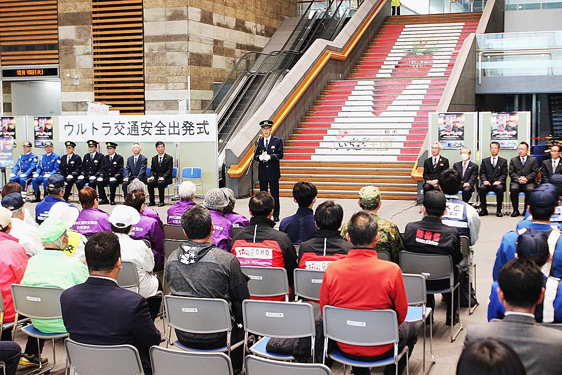 【宇都宮】栃木県警察本部は、県民総ぐるみ交通安全週間がスタートしたのに伴い、栃木県庁で「ウルトラ交通安全出発式」を開催した。自動車関係団体の役員らが来賓として出席し、子どもたちに反射キーホルダーをプレゼントした。式典後に県民らが見守る中、...