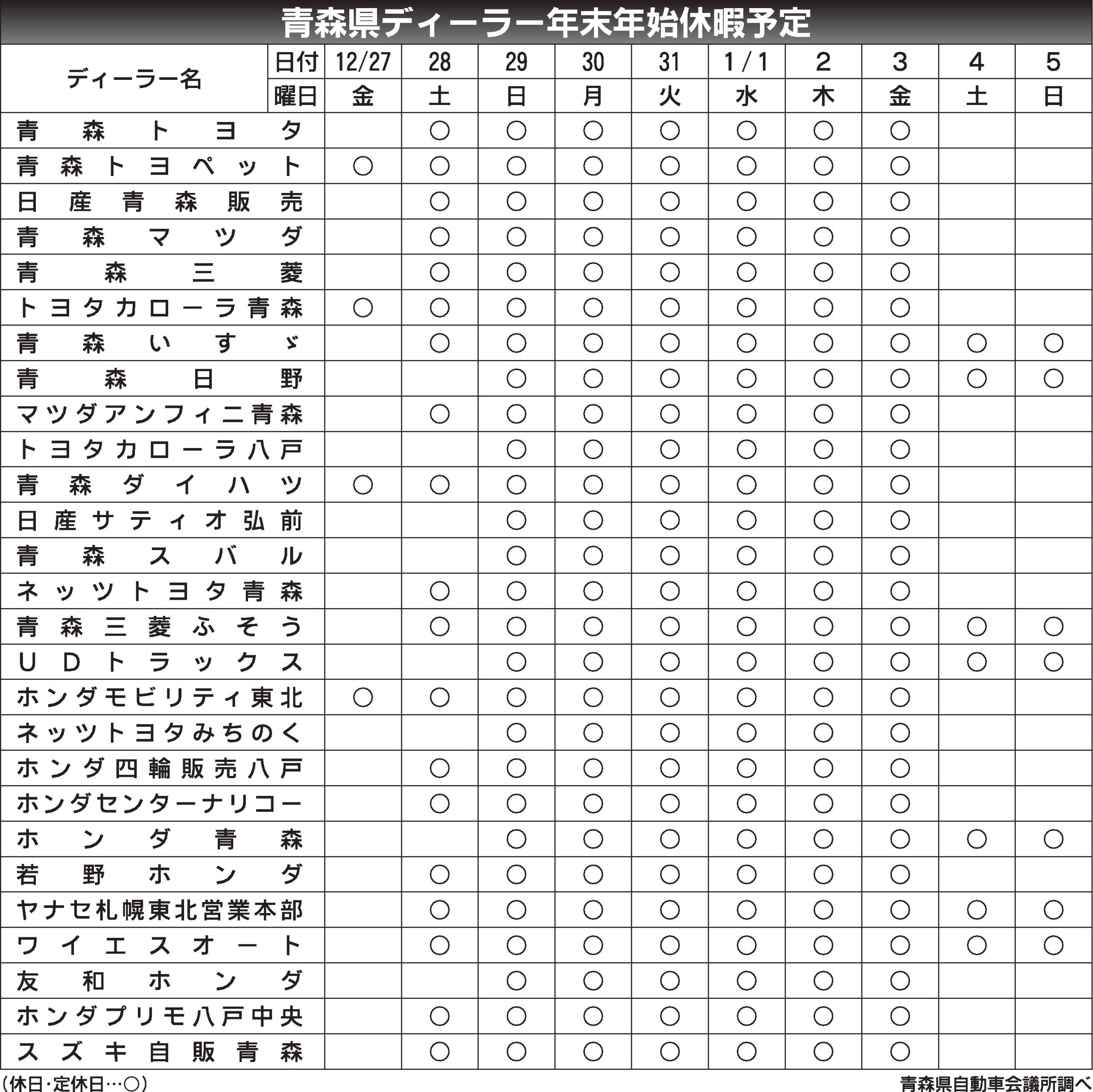 〈山形県ディーラー年末年始休暇予定〉2025/12/26~2026/1/7