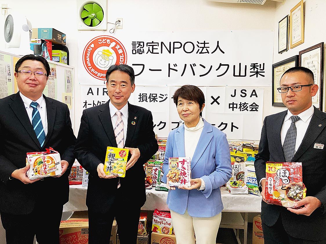 【甲府】損害保険ジャパン山梨支店(佐々木剛支店長)、AIRオートクラブ山梨支部(鶴田勝典支部長)、JSA中核会山梨支部(小林法文支部長)の3団体は11月17日、「フードバンクプロジェクト」を協同開催、フードバンク山梨を通じて困窮家庭に食品...