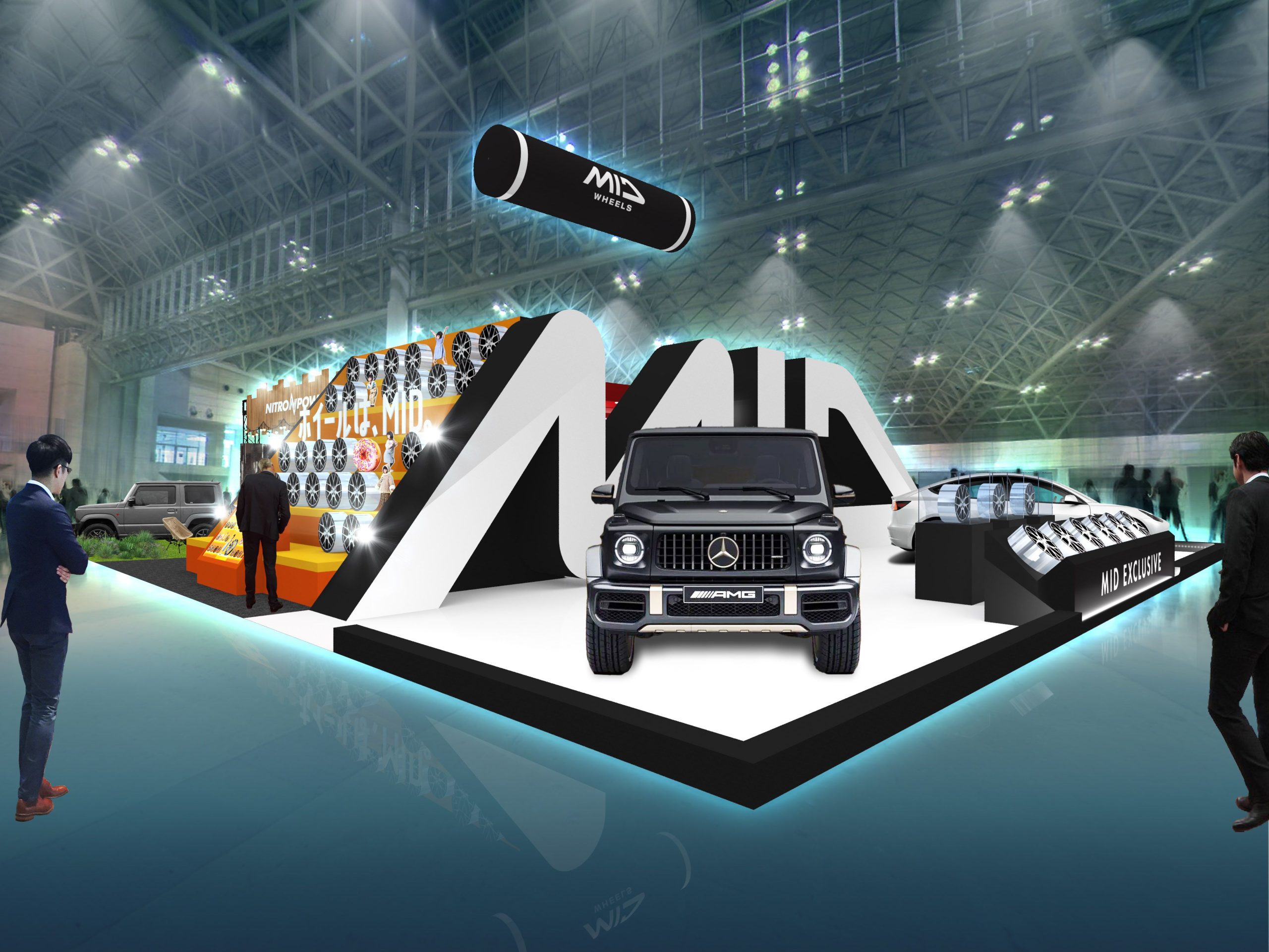 マルカサービスは、オフロード車やレーシングカー、プレミアム車など、ジャンルごとの世界観を表現し、バラエティに富んだ演出で新製品のホイールなどを披露する。昨年に続き、巨大な「MID」ロゴを設置するとともに、数多くのホイールを山のように並べた展示も行い、豊富なラインアップで幅広いニーズに応える「MID WHEELS」ブランドを訴求する。