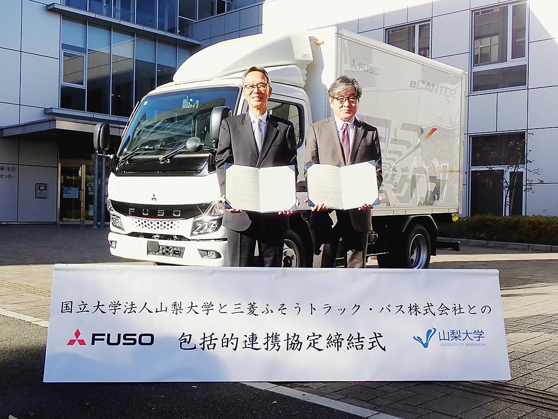 【甲府】三菱ふそうトラック・バス(カール・デッペン社長兼CEO)と山梨大学(中村和彦学長)は、「包括的連携に関する協定」を締結した。それぞれの知見を生かし、水素・燃料電池を用いた商用車両および周辺技術の開発・普及の加速に向けた取り組みを行...