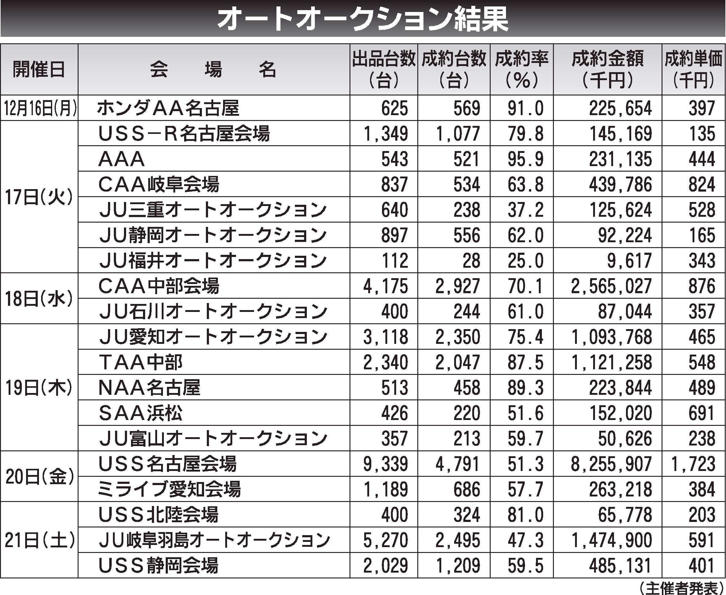 〈オートオークション結果〉中部地区 2024/12/16~21