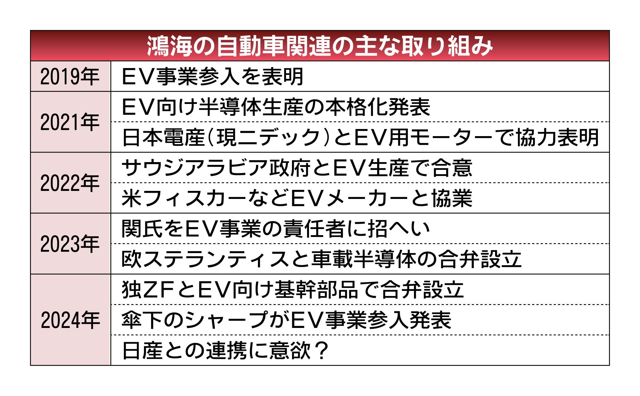 ホンダと日産自動車の経営統合協議の背景に見え隠れする台湾の鴻海精密工業(フォックスコン)。ホンダと日産は、公式には鴻海からの打診を否定するが、鴻海はルノー側への接触を含めて関心を示しているとみられる。電気自動車(EV)を事業の柱にしようと...