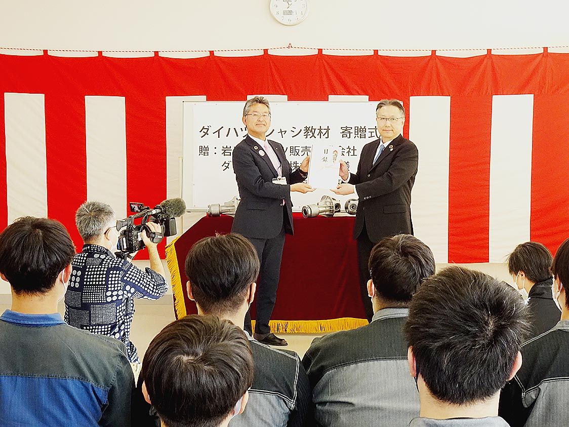 【盛岡】岩手ダイハツ(大原博之社長)は、自動車整備士を養成する岩手県立宮古高等技術専門校(細越健志校長)に、実習用教材としてデファレンシャル4基を寄贈、同校で「教材寄贈式」を行った。同校に対する教材支援は今回で3年連続。 同社は整備士の育...