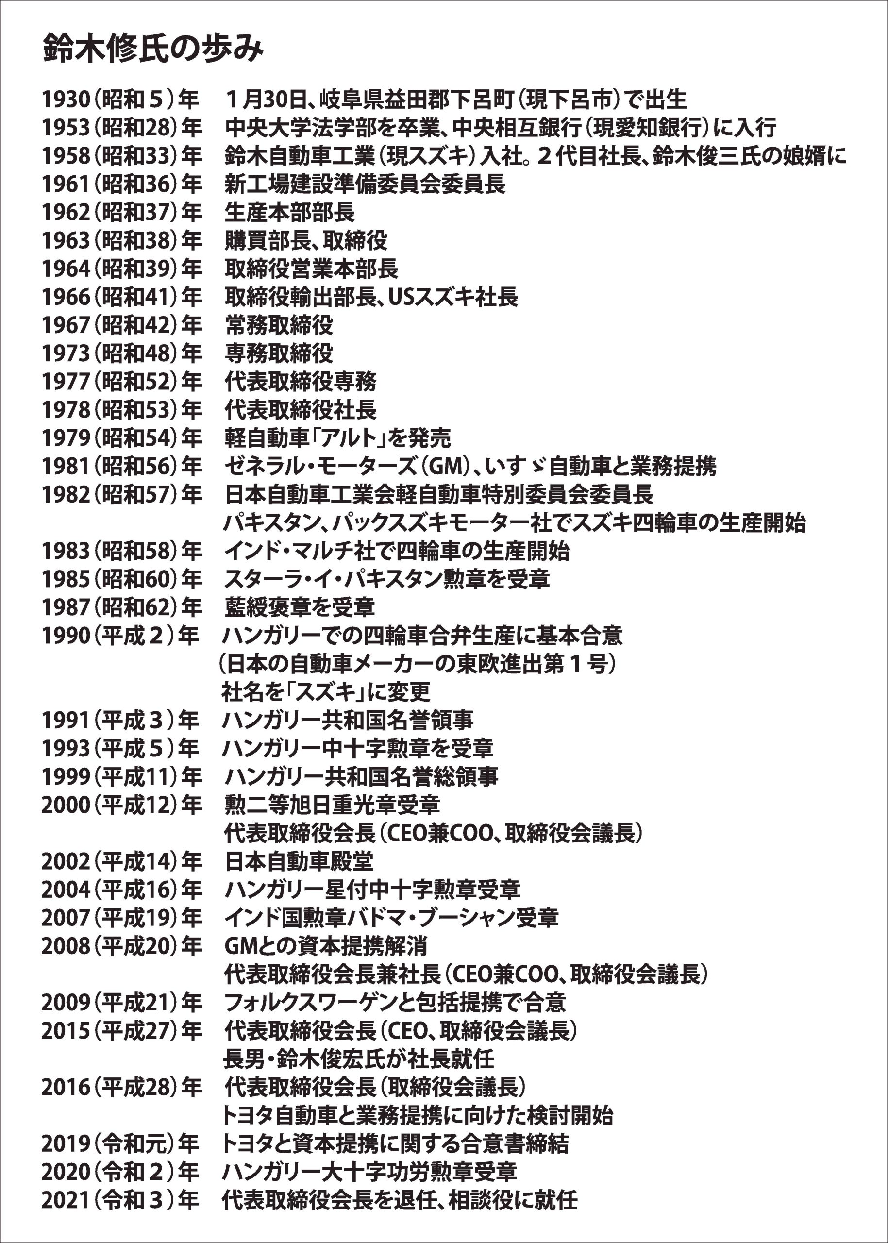 1978年6月、静岡県浜松市にある小さな自動車メーカーの社長に就いた鈴木修氏。2021年6月に一線を退くまで、43年間にわたってスズキの経営を主導し、連結売上高5兆3742億円、四輪車世界販売316万台(いずれも2024年3月期)と、単独...