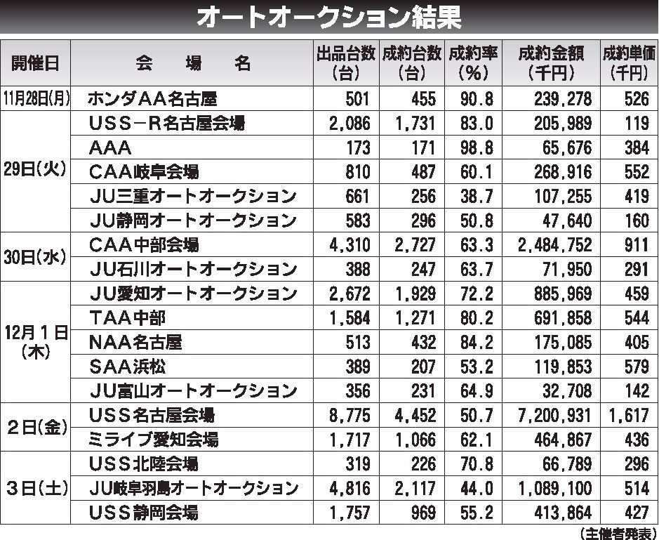 〈オートオークション結果〉中部地区 2022/11/28~12/3