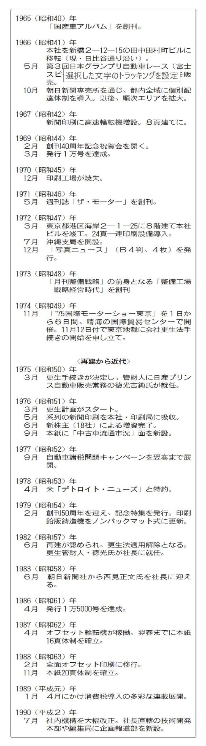 創刊当時の日刊自動車新聞は、数々のイベントを開催し、自動車産業の振興を図った。中でも先見の明があったと言えるのが、32年に東京・日比谷公園で催した第1回「自動車展覧会」だった。創刊3周年の記念行事として開催したもので、テント張りの設営ながら、日本で初めての自動車専門展覧会となった。