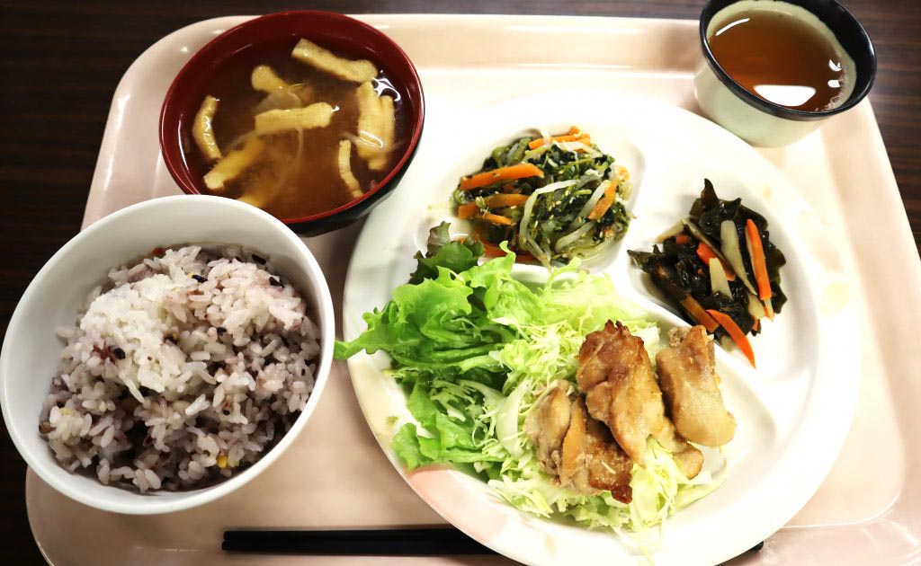 その一つが、長岡保健所管内の「食生活改善推進委員」と共同開発した「減塩!健康メニュー/チキンのレモンバターしょうゆ焼き定食」。チキンを口に入れると、醤油のうま味やレモンの酸味、バターのコクが合わさり、豊かな風味を醸し出す。塩分控えめでも美味しく食べられる工夫が凝らされているようだ。地域交流などを目的に開発したメニューだが、社員からは「バターとほんのりレモンの風味が鶏肉に合っている。五穀米は見た目にも鮮やかで健康効果がありそう」と味の評判も上々だ。
