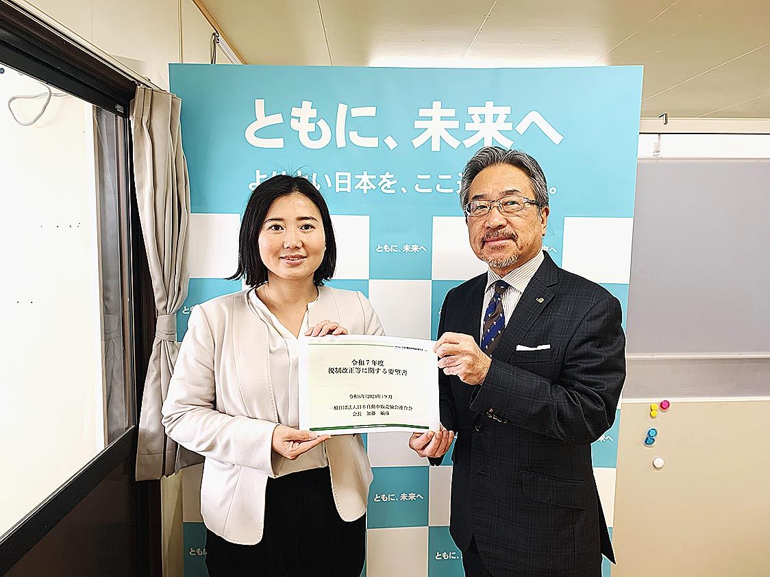 自販連函館支部(河村祥史支部長)など函館管内の自動車関連4団体は、向山淳衆議院議員に「令和7年度税制改正などに関する要望書」を手渡した。 函館地方自動車整備振興会、函館軽自動車協会、日本自動車連盟(JAF)函館支部と合同で要望活動を実施し...