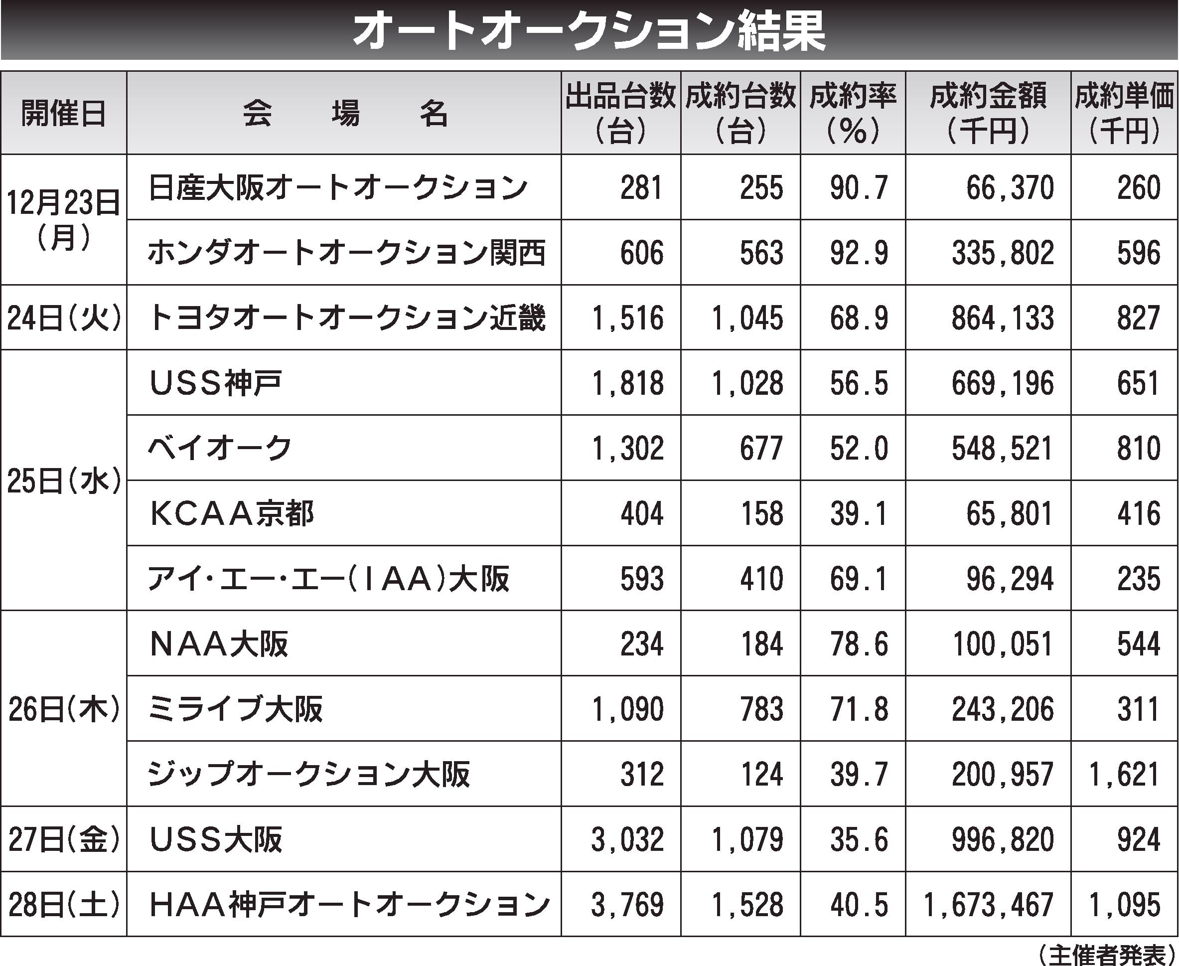 〈オートオークション結果〉近畿地区 2024/12/23~28