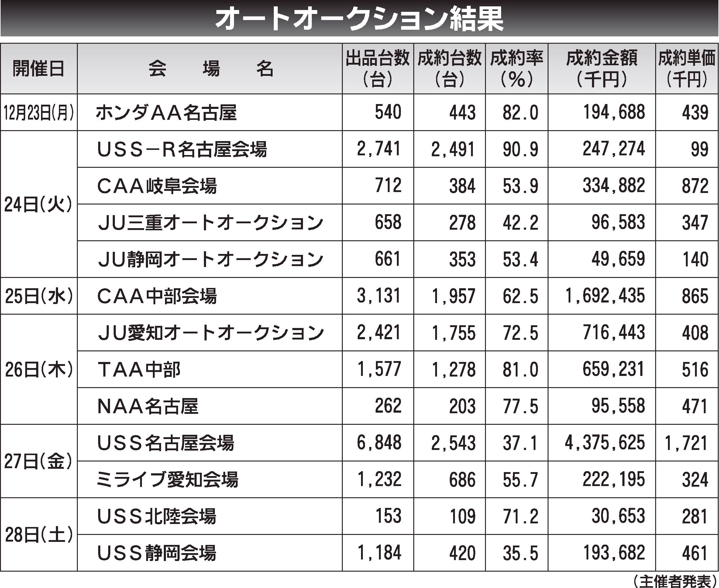 〈オートオークション結果〉中部地区 2024/12/23~28
