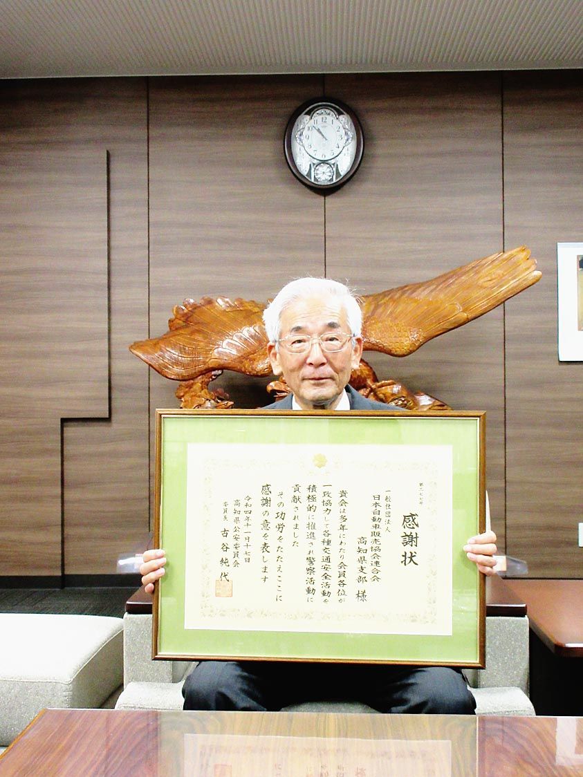 日本自動車販売協会連合会高知県支部(佐藤誠三支部長)は、長年にわたり各種交通安全活動を推進し、警察活動に貢献したため、高知県公安委員会(古谷純代委員長)から感謝状が贈られた。 同支部では会員の協力で県内各地で地元の警察署や自治体とともに、...