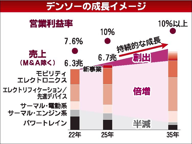 デンソーは15日、電動化や自動運転・先進運転支援技術(ADAS)などの成長分野を中心に今後10年間で10兆円を投資し、2035年に成長分野の売上高で7兆円を目指すと発表した。インバーターや熱マネジメントシステムなどの電動車向け事業を強化す...