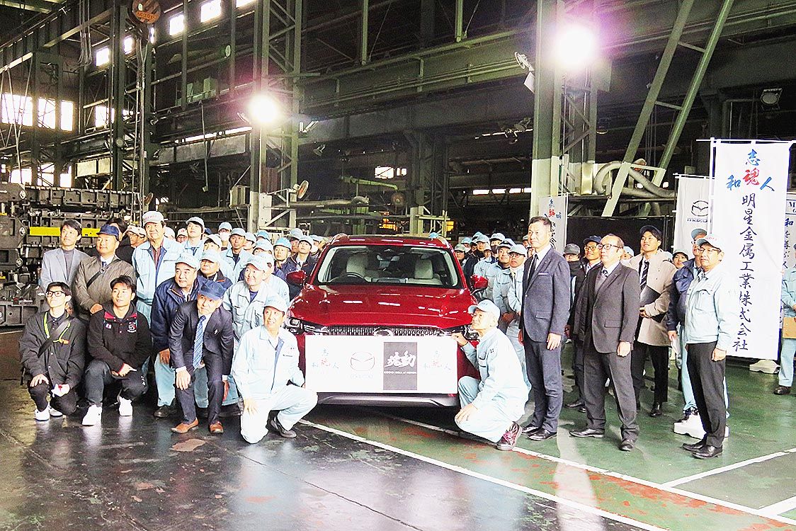 自動車外装部品のプレス金型を手がける明星金属工業(上田幸司社長、大東市)は、マツダの新型SUV「CX―80」の製造に携わった従業員の思いを、メーカーや販売会社に伝える「魂の伝達式」を行った。マツダから弘中武都常務と技術本部ツーリング製作部...