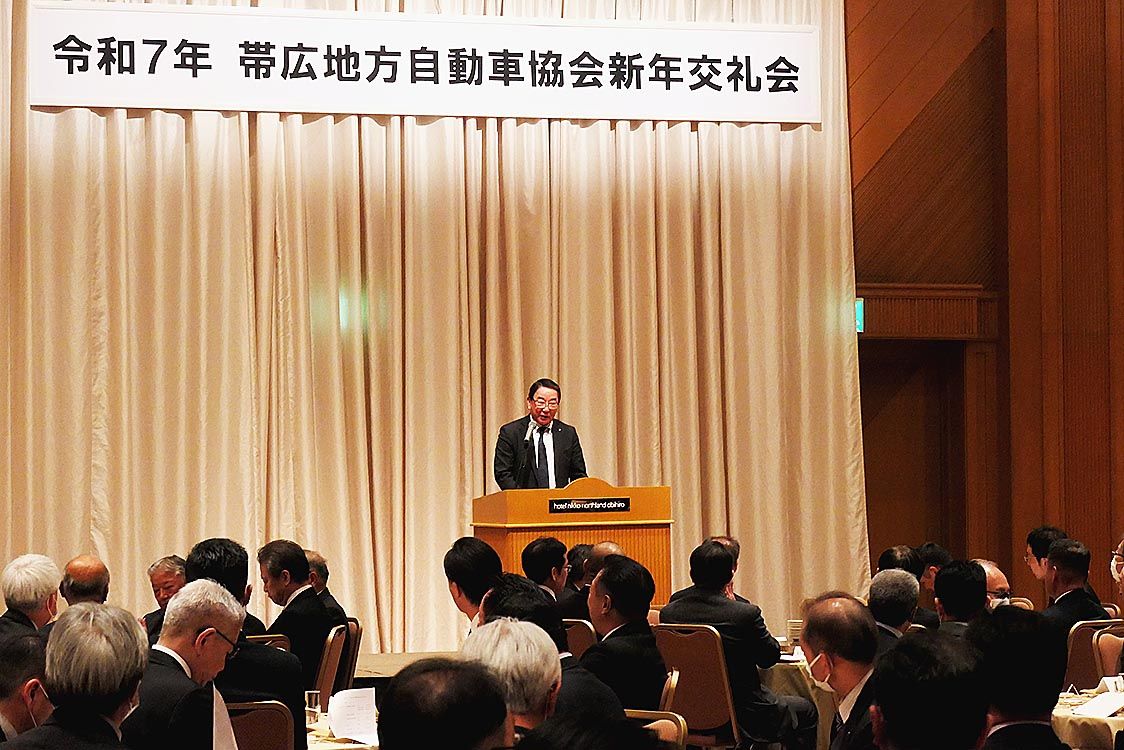 【帯広】帯広地区の自動車関係団体で構成する帯広地方自動車協会は7日、毎年恒例の新年交礼会を帯広市内のホテルで開催した。自動車関連団体の関係者や来賓ら約130人が出席した。 冒頭、帯広地方自動車整備振興会の石原英樹会長が「健全な車社会の構築...
