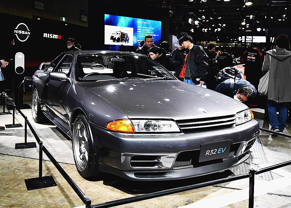 R32型の「スカイラインGT―R」をベースに電気自動車(EV)にしたモデルを参考出品した。日産の有志のエンジニアによる開発チームがこだわったのは、EVでもR32型の走行性能、音、振動を再現すること。ベース車のエンジンの出力カーブや変速ギャ...