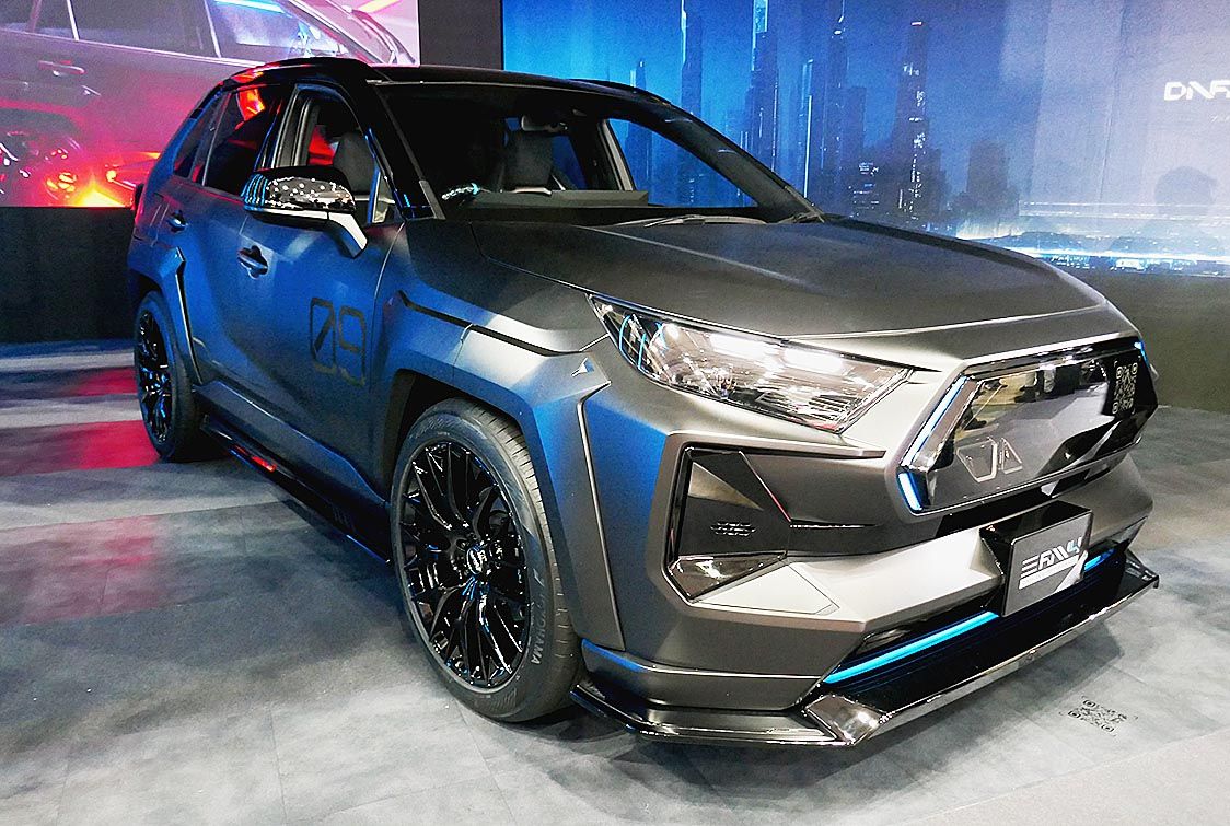 豊田自動織機が開発から生産まで手がける「RAV4」の新たな一面を表現したのが「ダウンサイドパフォーマンス」。外観はRAV4が持つ従来のアウトドアイメージとは異なり、非現実的で近未来的なメタバースやゲームの世界を意識した。ステルス戦闘機を彷...