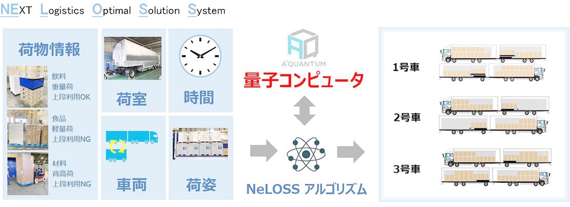 日野自動車傘下のネクスト・ロジスティクス・ジャパン(NLJ、梅村幸生社長、東京都新宿区)は、配車と荷物積み付け作業の業務効率を量子コンピューター技術で改善するシステム「NeLoss(ネロス)」を導入したと発表した。同社の場合、人が1日に2...