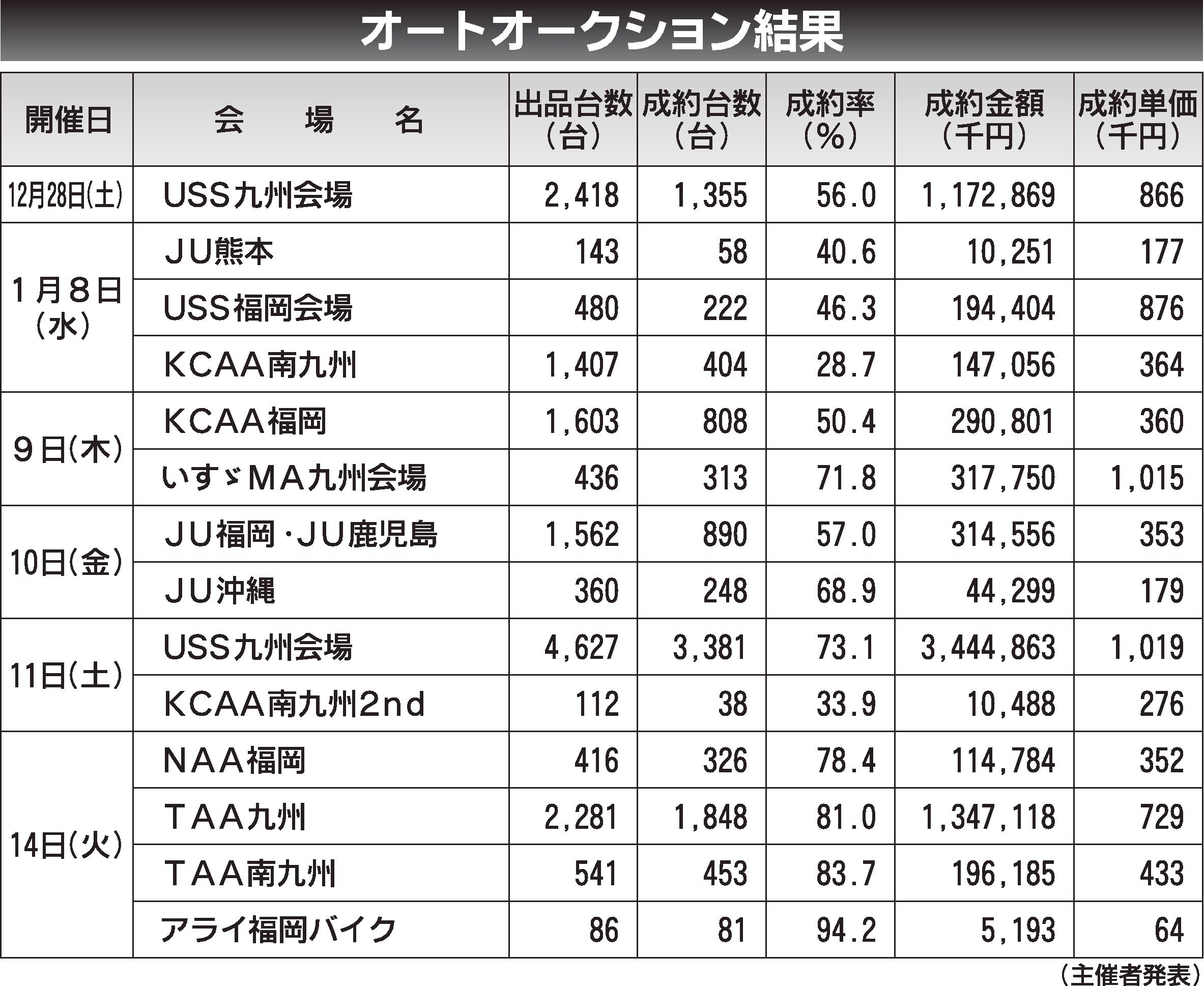 〈オートオークション結果〉九州地区 2024/12/28~2025/1/14