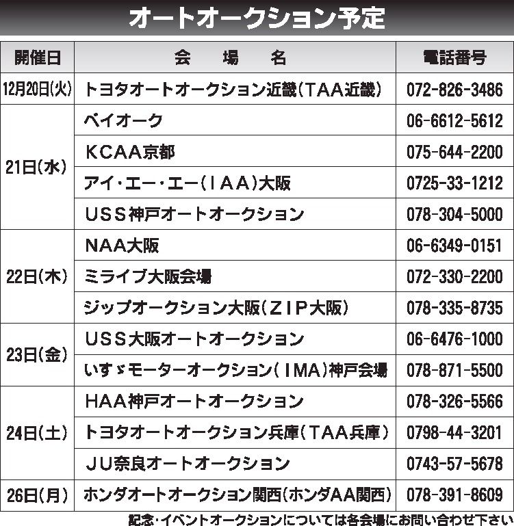 〈オートオークション予定〉近畿地区 2022/12/20~26
