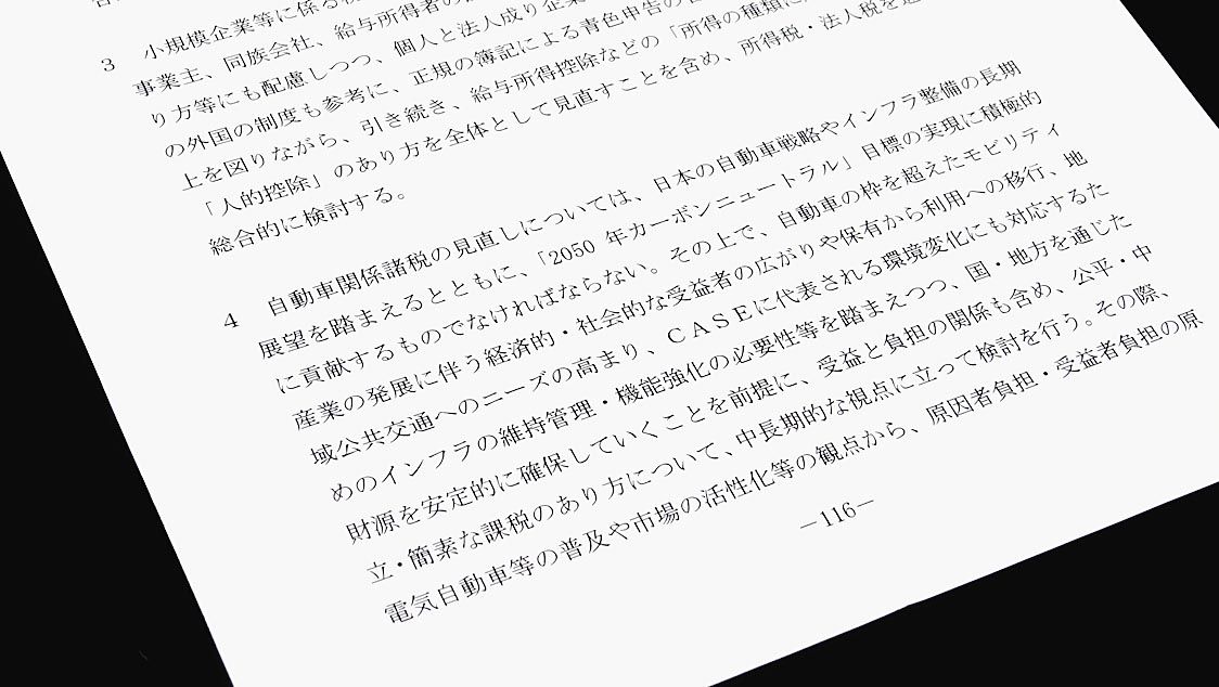 来年度以降の税制のあり方を示す、与党の「税制改正大綱」がまとまった。エコカー減税などの見直しに加え、電気自動車(EV)などの普及をにらんだ税体系の抜本見直しが焦点の一つだったが、「検討課題」として3年後に結論を持ち越した。来年以降、「カー...