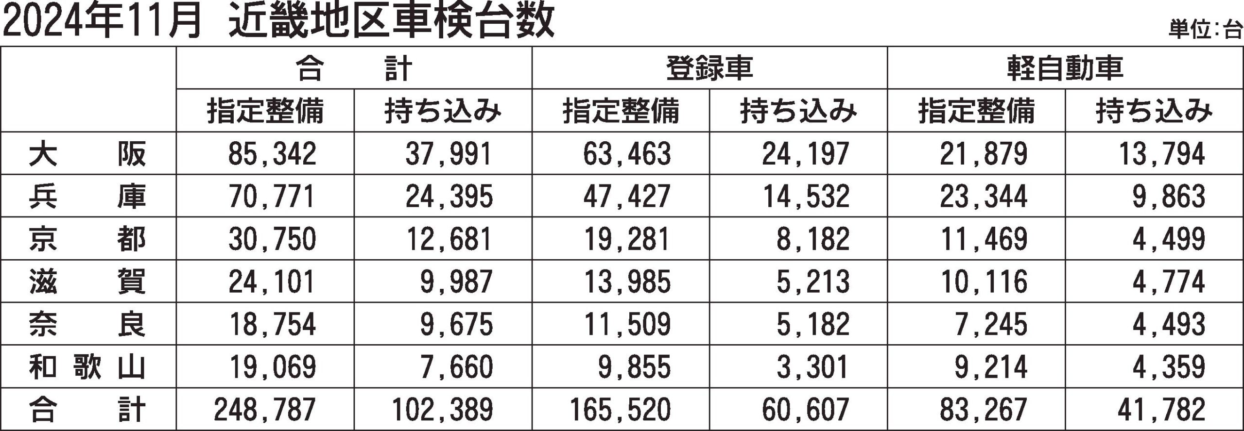 近畿2府4県の11月の継続検査(車検)台数(軽自動車を含む)は、前年同月比0.7%減の35万1176台で、3カ月ぶりに前年を下回った。登録車は同0.4%増の22万6127台で3カ月連続の増加、軽は同2.7%減の12万5049台と3カ月ぶり...