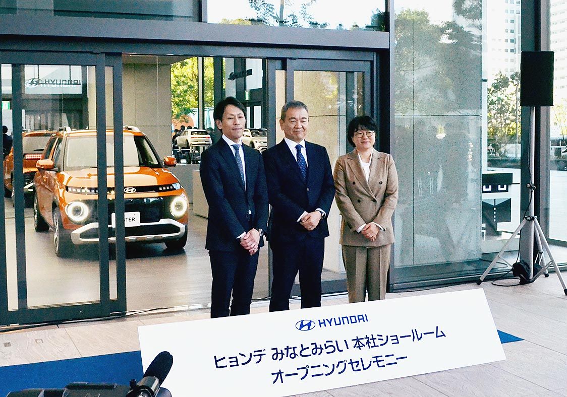 ヒョンデモビリティジャパン(七五三木敏幸社長、横浜市西区)は、「ヒョンデみなとみらい本社ショールーム」をオープンした。直営拠点としては横浜市港北区、大阪市中央区(準備室)に次いで3カ所目になる。同社は横浜市内にあった本社を1日付で近くのビルに移転したが、その1階に新ショールームを設置した。「東京オートサロン2025」で、日本で初公開したコンパクトSUVタイプの電気自動車(EV)「インスター」などを展示している。