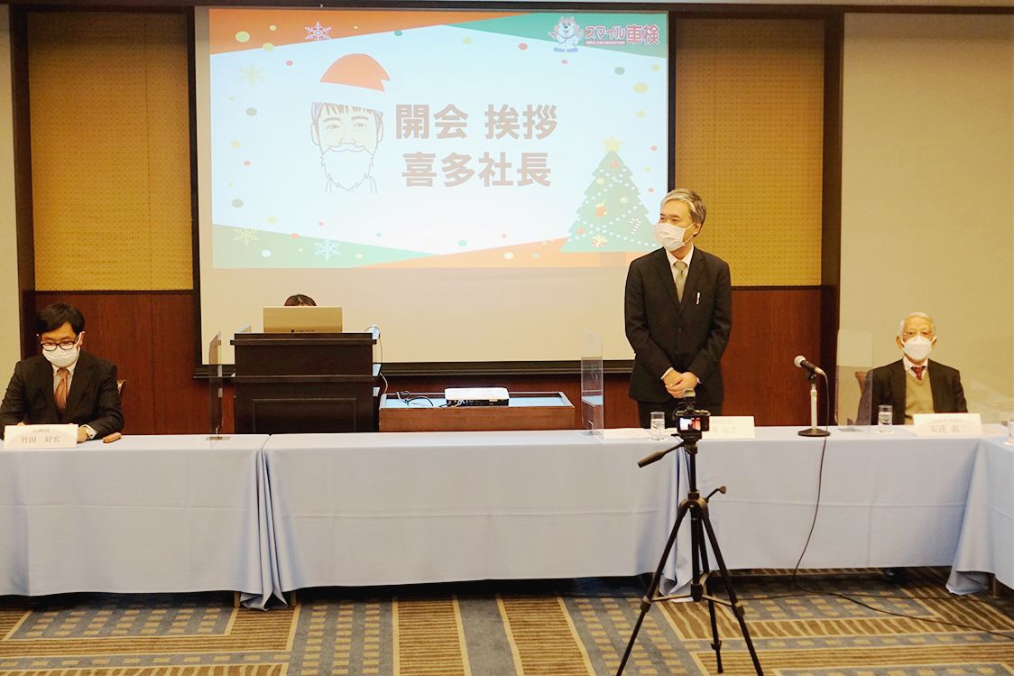 【大阪】車検フランチャイズチェーンのスマイル車検本部(喜多克之社長)は、大阪市内で「2022年第5回オーナー会議・定例会・忘年会」を開催した=写真。今年の重点課題をはじめ、加盟店の取り組み、23年の本部体制について発表。秋冬キャンペーン(...