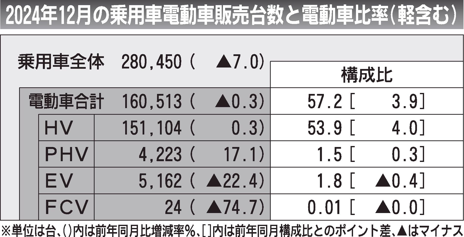 〈2024年12月の乗用車電動車販売台数と電動車比率(軽含む)〉