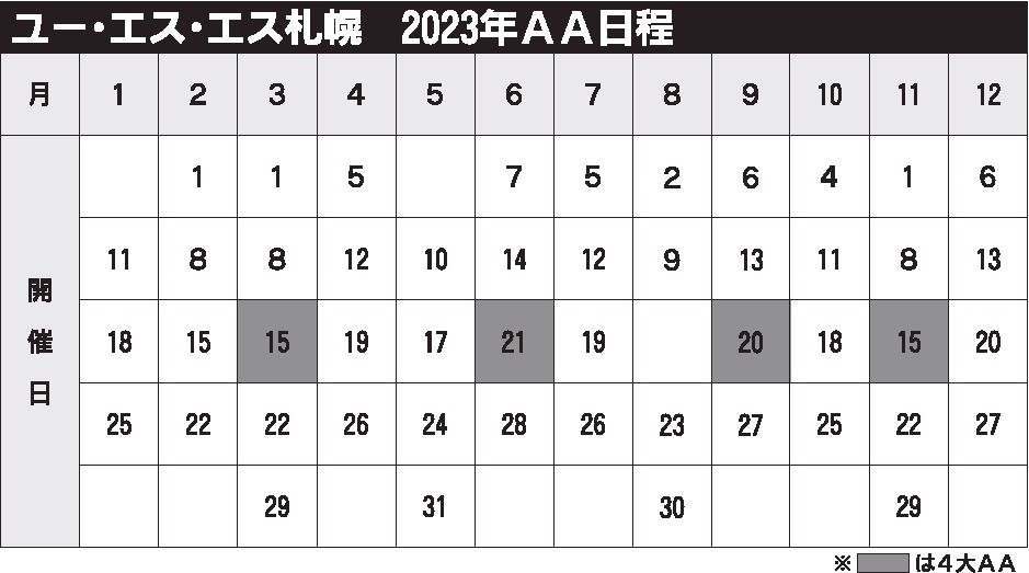 ユー・エス・エス(USS)札幌会場(菅田幸康会場長)は、2023年の中古車オークション(AA)日程をまとめた。毎週水曜日に49回実施し、年間最大の「25周年記念AA」を3月15日に開く。新車減産で中古車発生量が低迷する中、出品、落札店のニ...