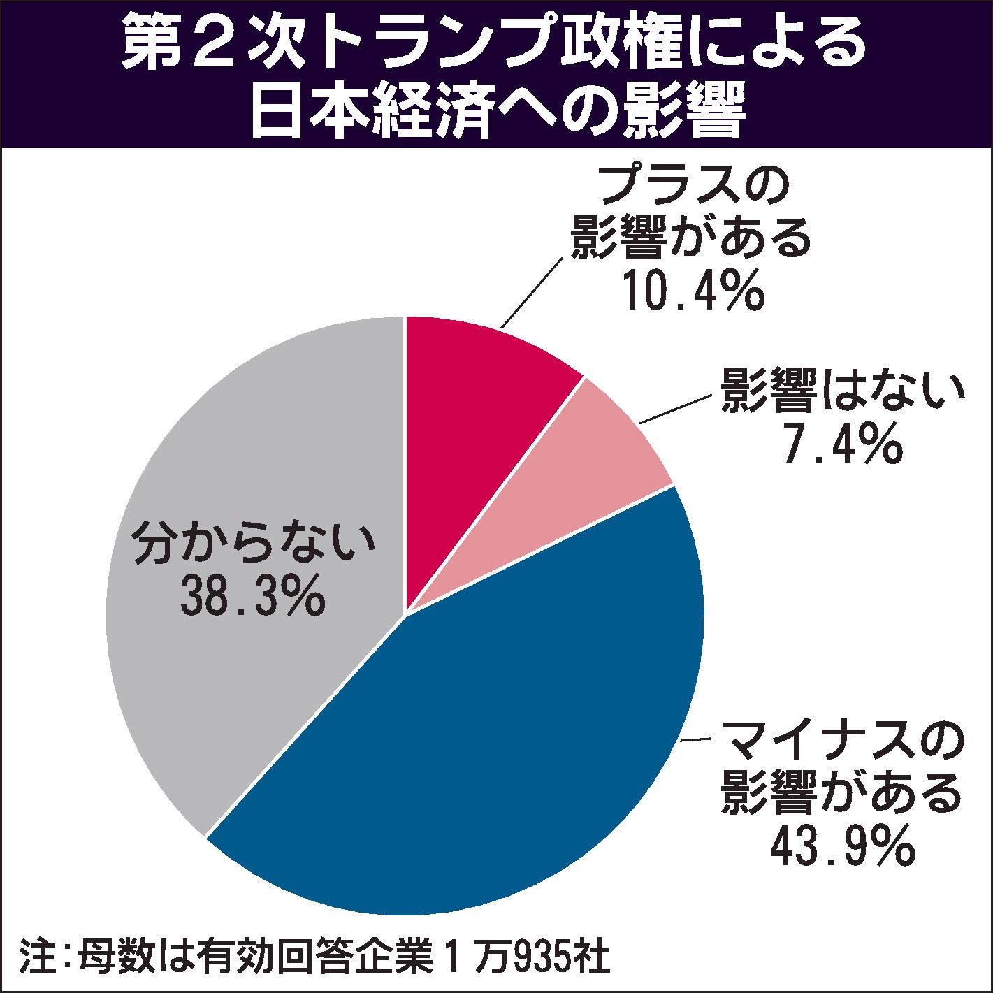 帝国データバンクによると、第2次トランプ米政権の発足に関し、調査した企業の4割超が「日本経済へマイナスの影響がある」と回答した。より包括的な経済安全保障政策の展開によって、重要技術が規制を受けたり、対中政策がより強硬になるなどの影響を不安...