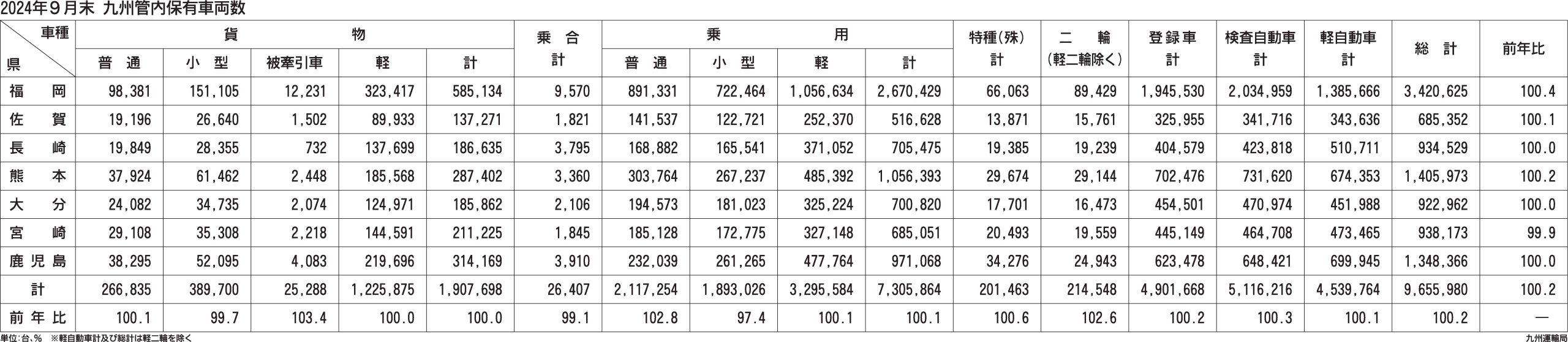 〈2024年9月末 九州管内保有車両数〉