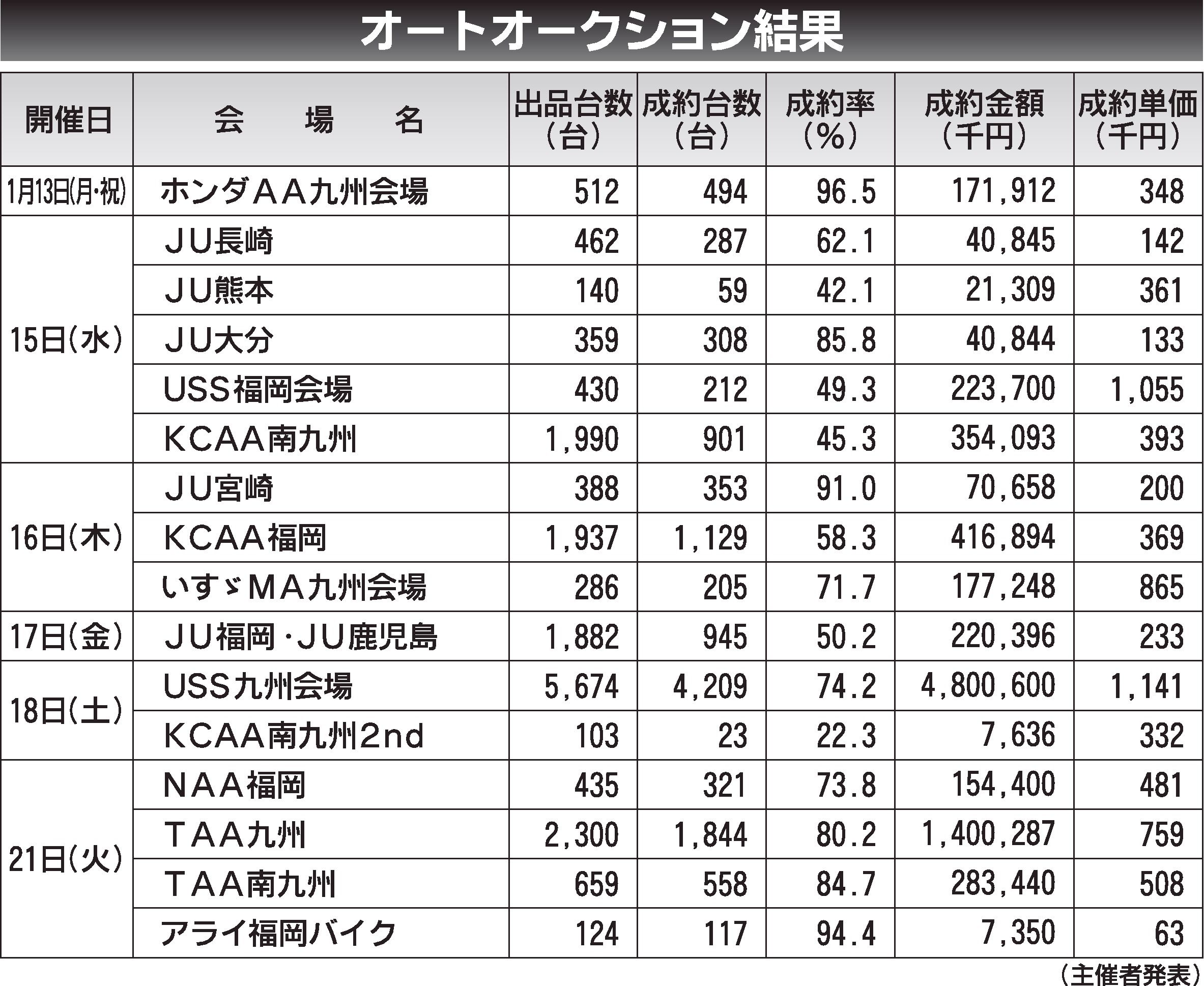 〈オートオークション結果〉九州地区 2025/1/13~21