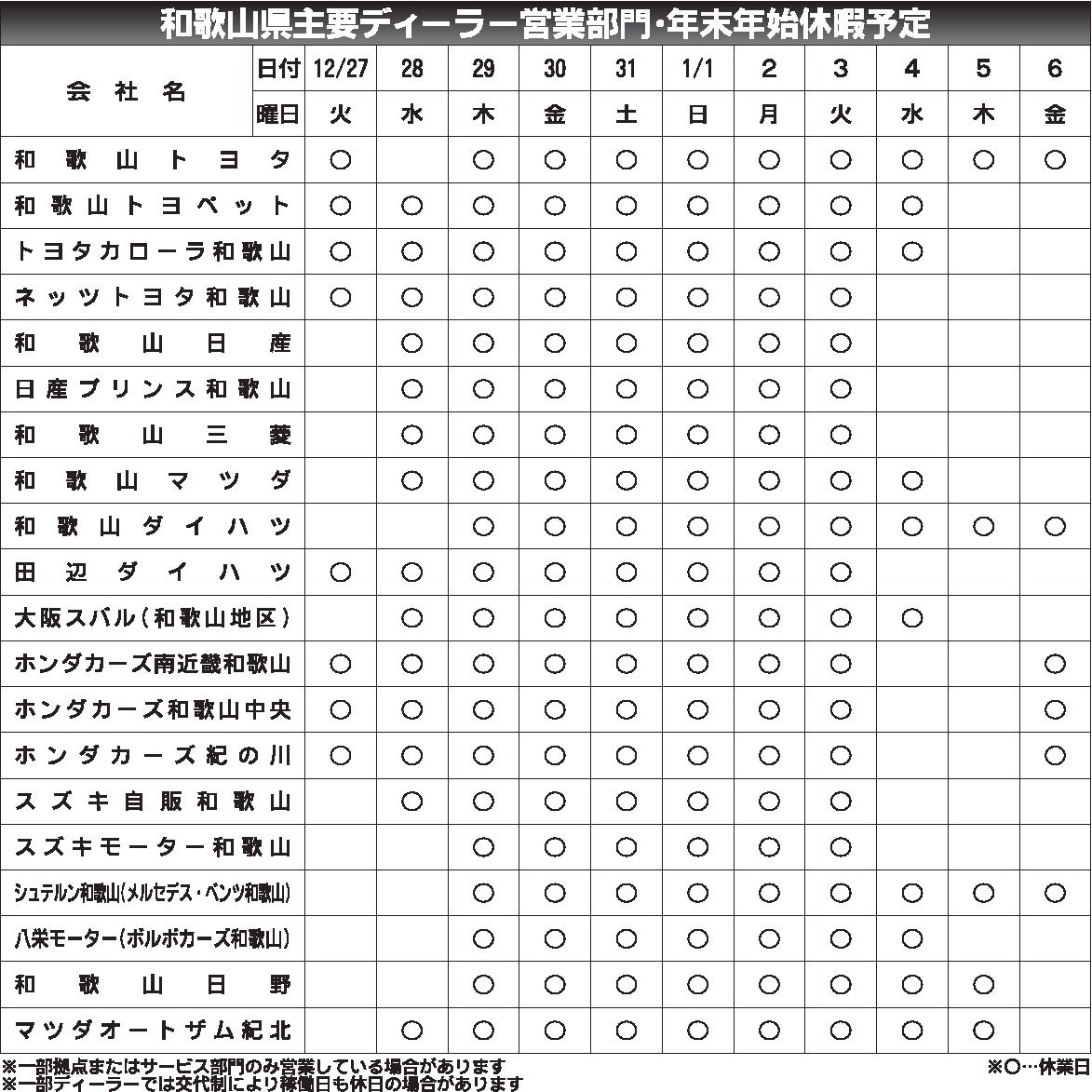 〈和歌山県主要ディーラー営業部門・年末年始休暇予定〉2022/12/27~2023/1/6