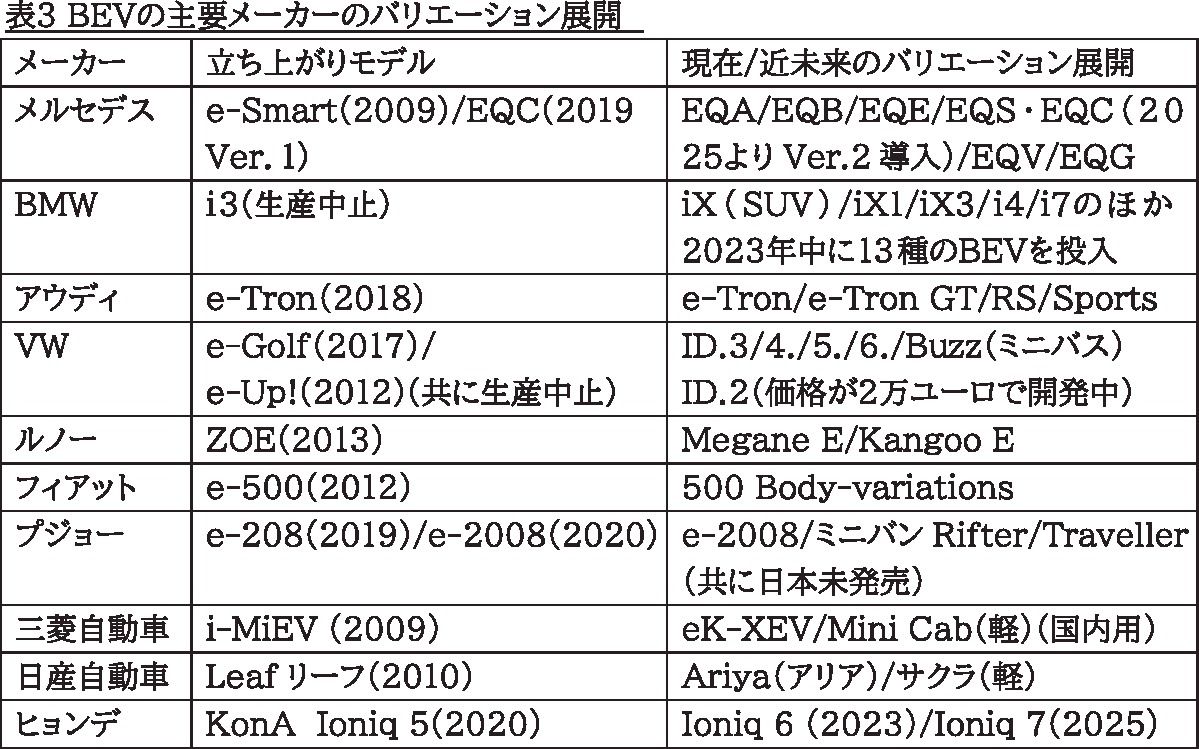 ④世界の潮流はBEV、導入期を過ぎバリエーション展開・拡大に入った 三菱や日産が早くからBEVを導入したが、世界的には花咲かず日本のローカルのBEVで終了したのは残念。日産「リーフ」は2019年に累積40万台を販売(なおVWは2022年1...