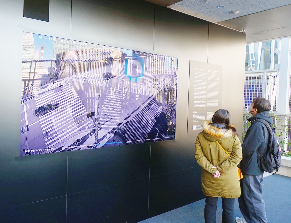 データミュージフィケーションはソニーと取り組んでいるプロジェクトで、屋上に設けたカメラで、真下の数寄屋橋交差点周辺を撮影。街を行き交うクルマや人の動きを解析し、天候や気温などの情報も組み合わせ、これらのデータをリアルタイムで音楽に変換する。「移動によって生み出される新たな体験を模索するプロトタイピングプロジェクト」という。車両展示は3月17日までの予定だ。