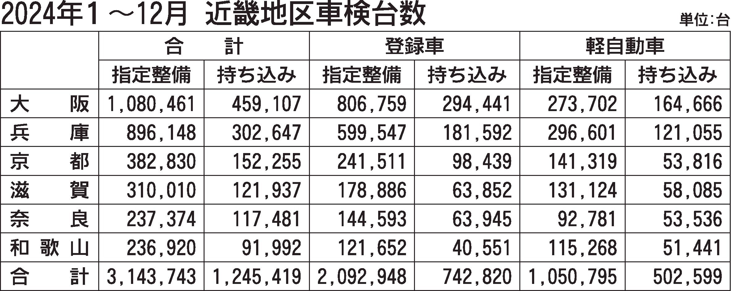近畿2府4県の2024年1~12月車検台数、4年ぶりに減少 登録は2%減