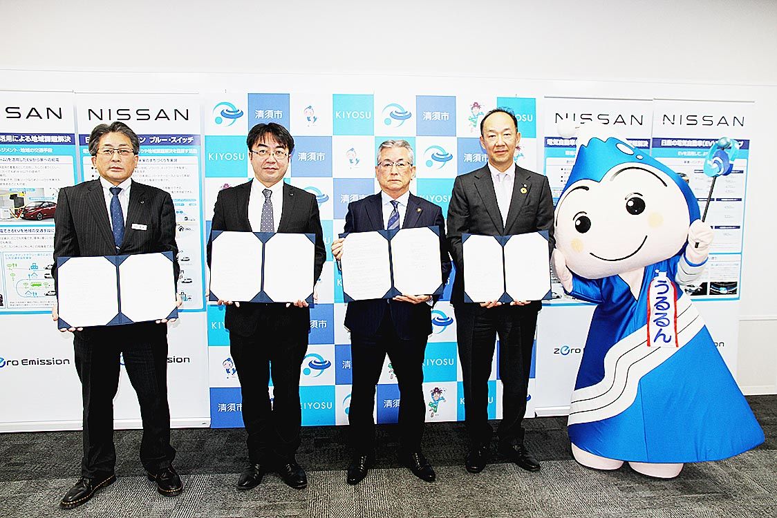 【名古屋】日産自動車と愛知県内の日産ディーラー2社(愛知日産、日産プリンス名古屋)は、清須市と「電気自動車を活用した脱炭素化および災害に強いまちづくりに関する連携協定」を締結した。電気自動車(EV)の普及や脱炭素化の推進とともに、日産の販...