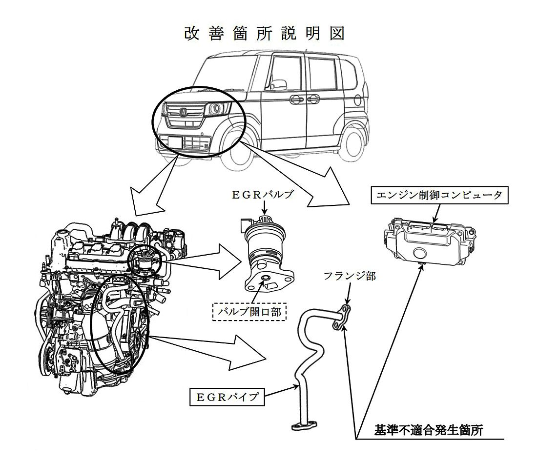 改善措置の内容は、(1)全車両、EGRパイプを対策品と交換し、エンジン制御コンピューターを対策プログラムに書き換える。EGRバルブ開口部周辺の錆も取り除く、(2)全車両、EGRパイプを対策品と交換し、EGRバルブ開口部周辺の錆を取り除く。