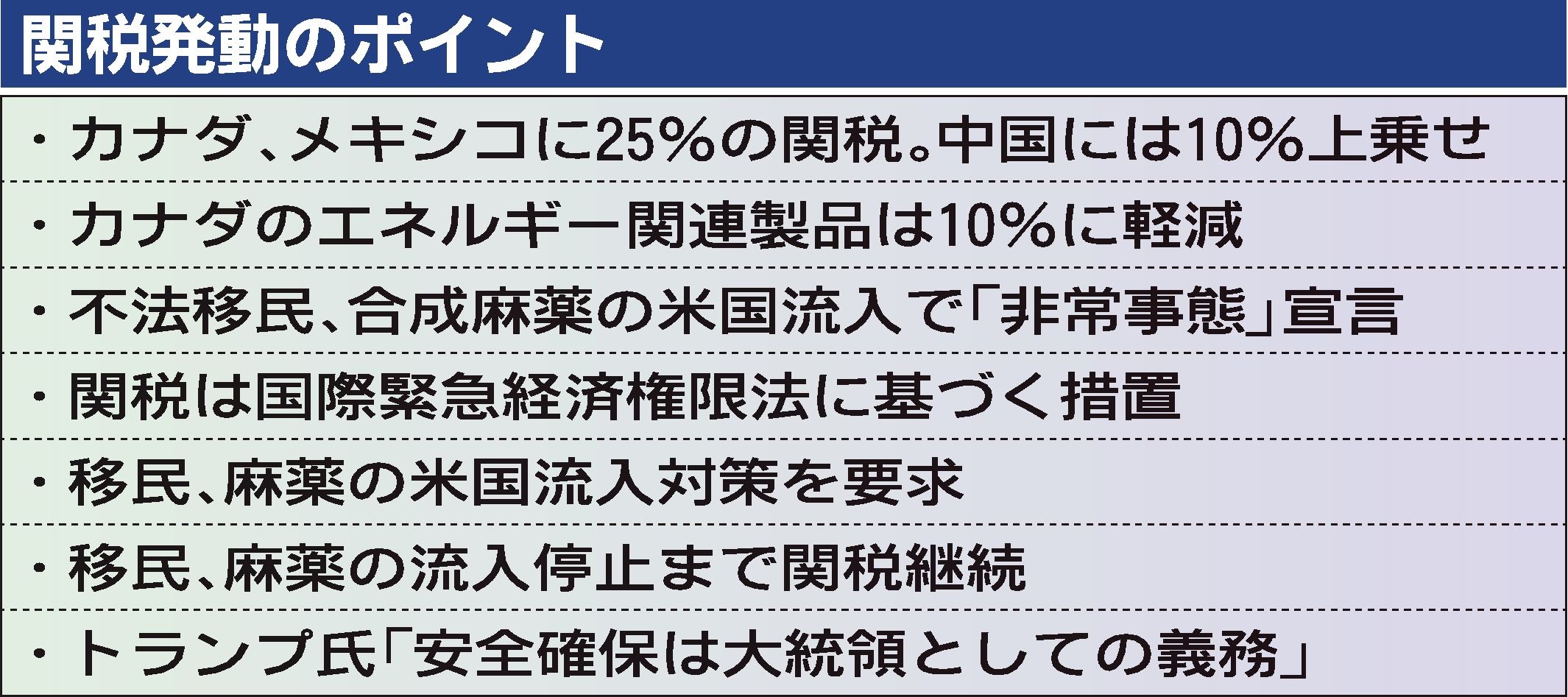 トランプ米大統領がメキシコ、カナダからの輸入製品に25%の関税、中国からの輸入品に10%の追加関税をそれぞれ4日から課す大統領令に署名した。自動車産業も影響を受ける見通しだ。メキシコ、カナダには日系自動車メーカーが多くの完成車拠点を展開し...