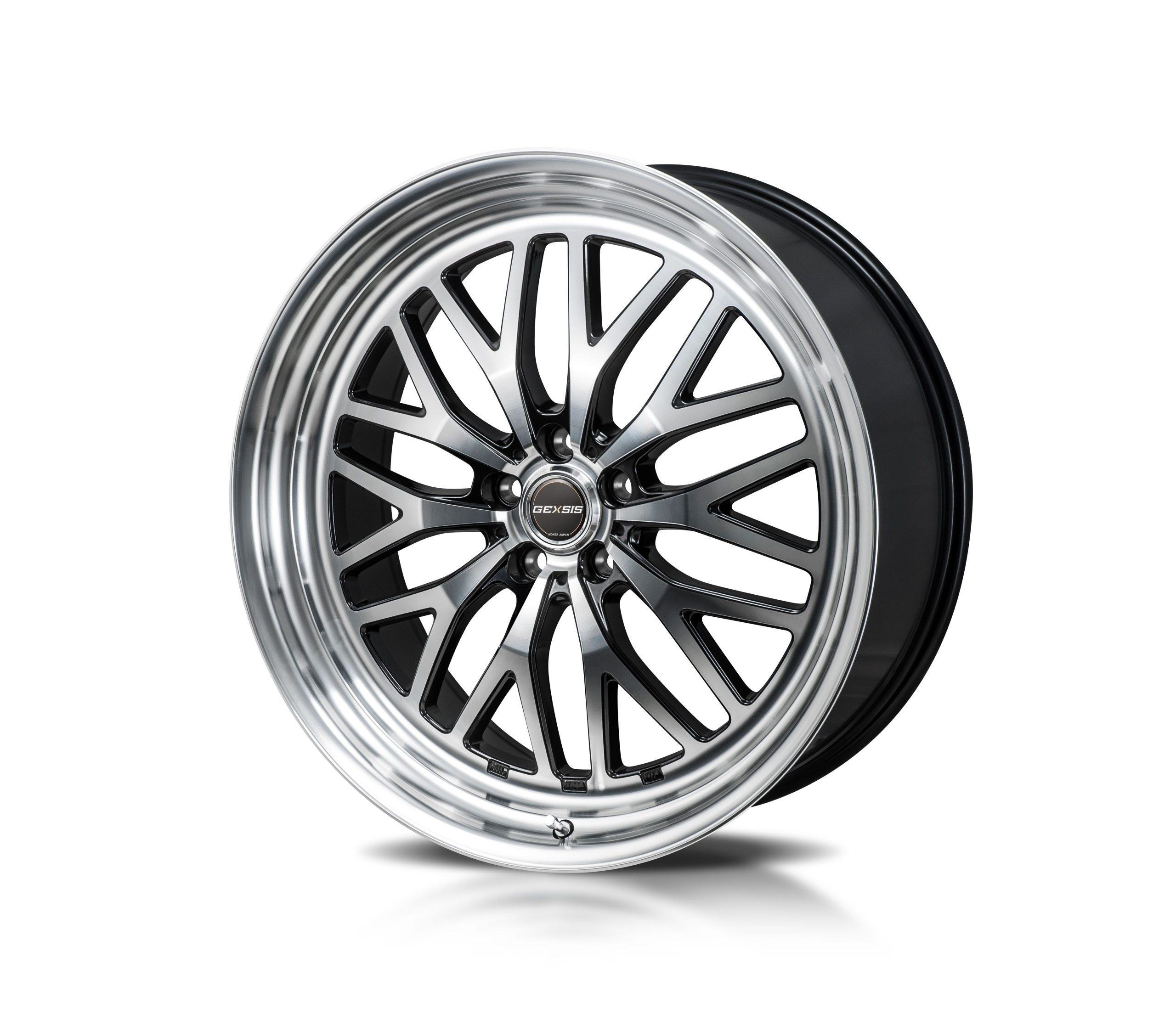 ジェクシスGM210は、段付きリムでスポーク周りを強調するデザインを採用。見る角度によって光り方も変わり、プレミアム感を演出する。リムとディスクの色を変えることで、2ピースや3ピースホイールのような印象を与える。カラーはブラックポリッシュとブラックの2種類で、ボルト車にも対応するため、ボルトホール径を15mmに設定した。大口径ながらも、車重があるクルマにも対応するため、強度もしっかりと担保されている。