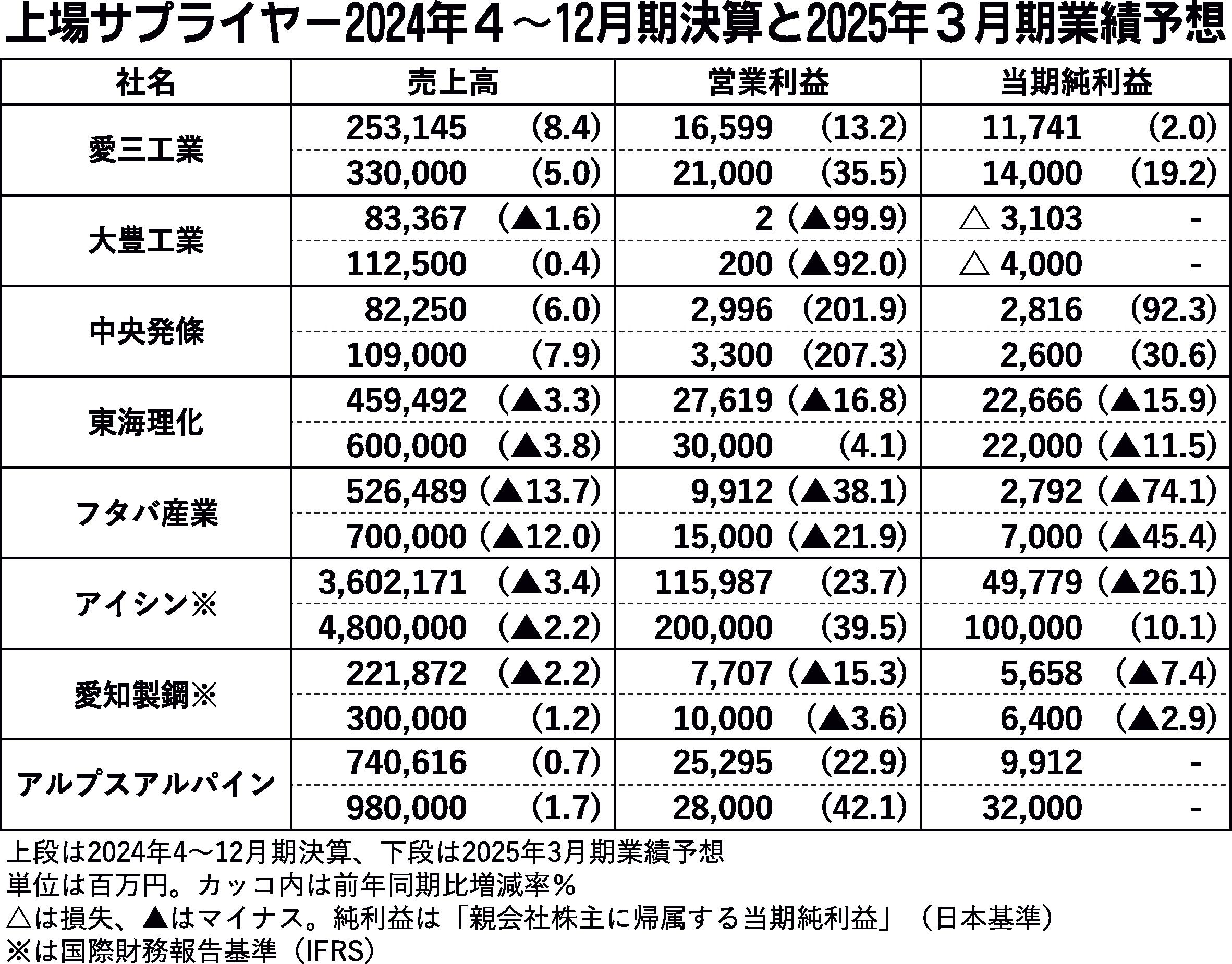 〈上場サプライヤー2024年4~12月期決算と2025年3月期業績予想〉(2/5付)