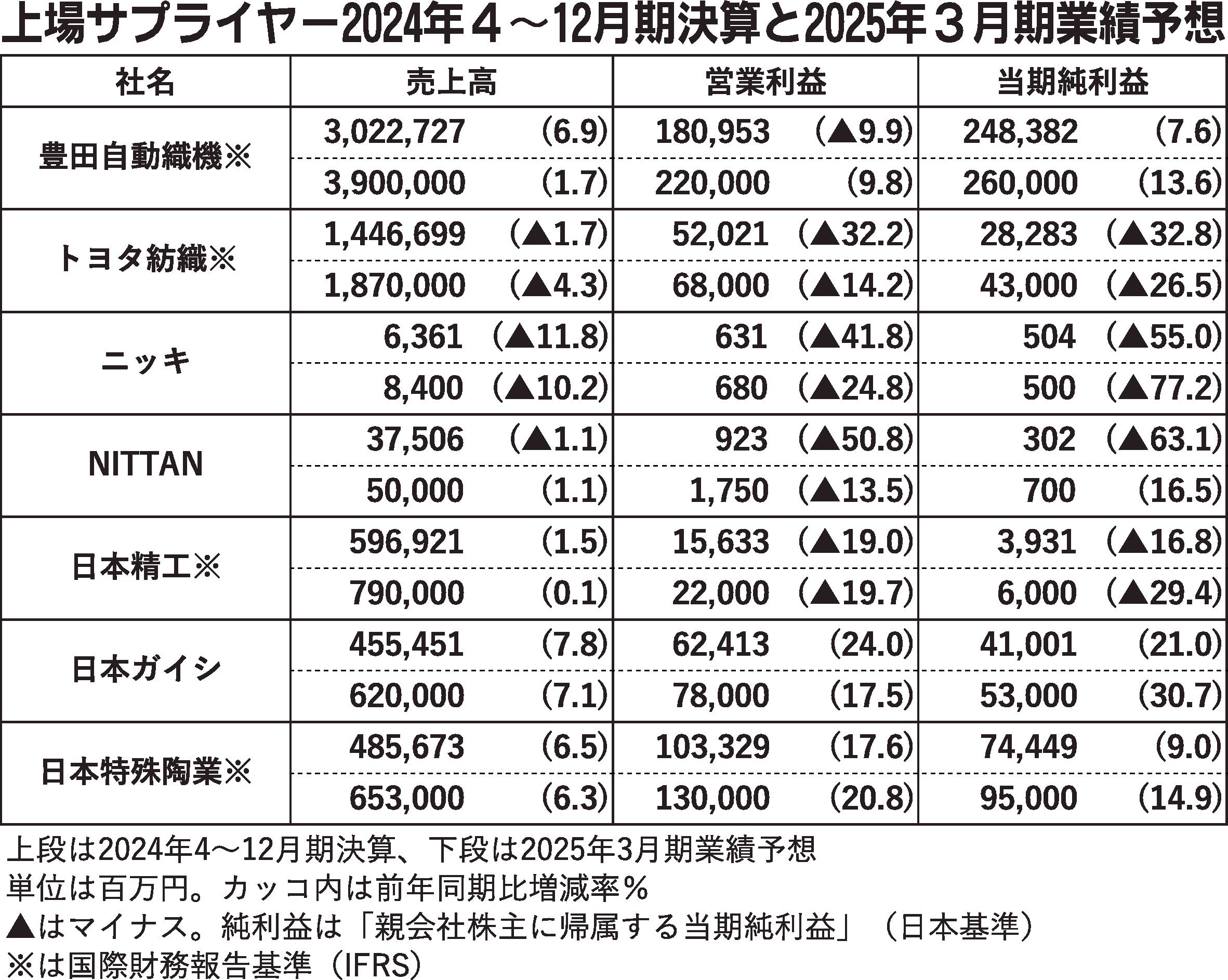 〈上場サプライヤー2024年4~12月期決算と2025年3月期業績予想〉(2/6付)