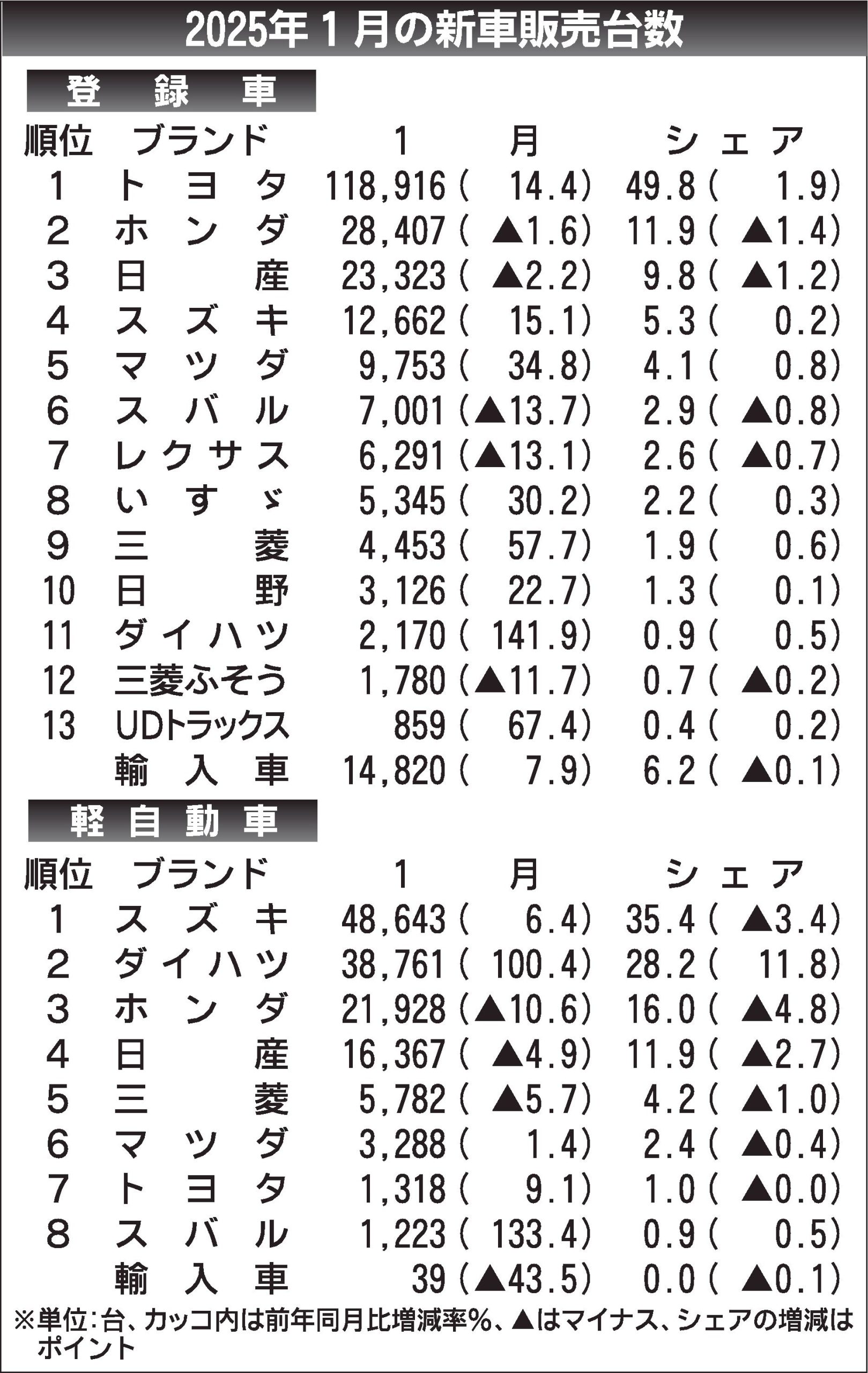 〈2025年1月の新車販売台数〉