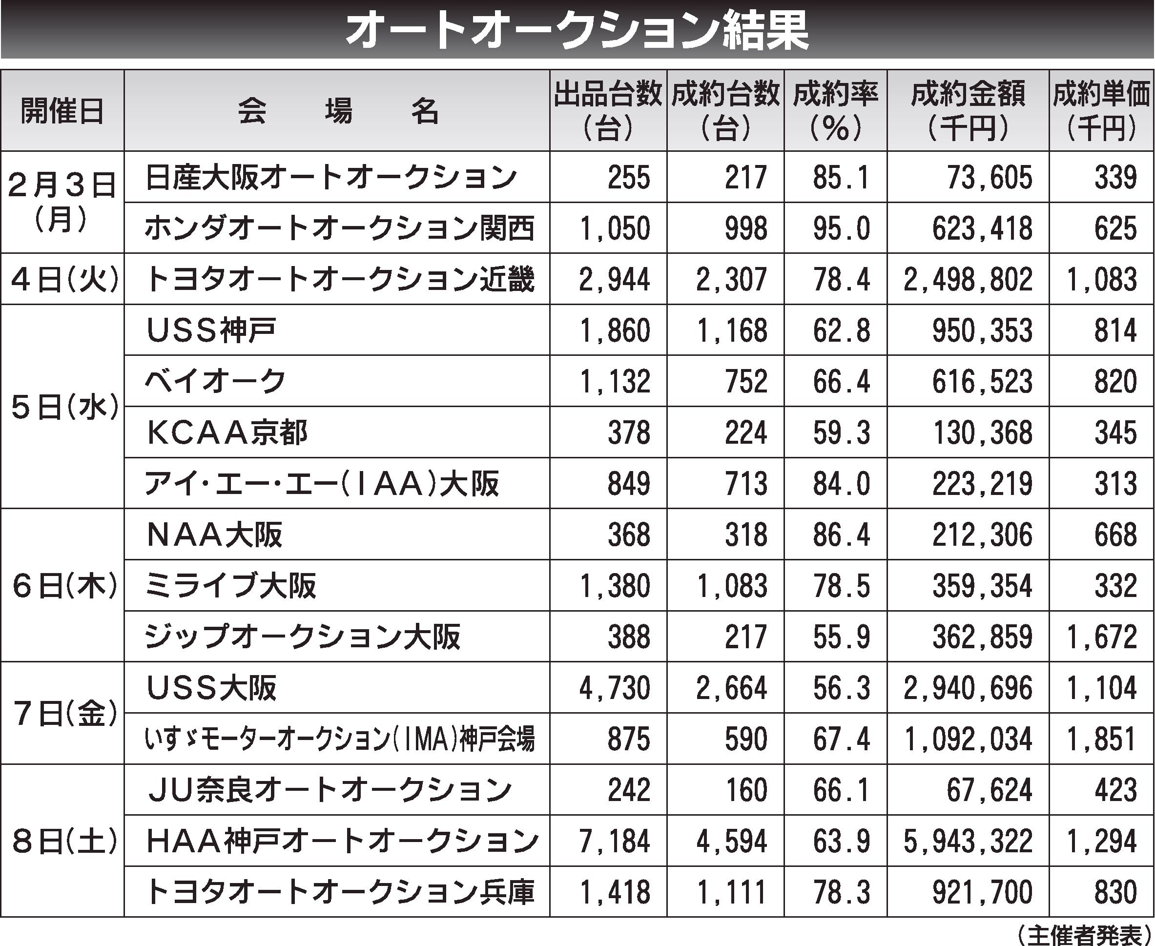 〈オートオークション結果〉近畿地区 2025/2/3~8