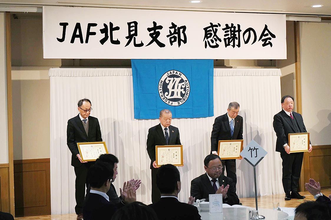 【北見】日本自動車連盟(JAF)北見支部(竹田貴彦支部長)は6日、「2024年度JAF感謝の会」を市内のホテルで開催。JAFの会員増加などで優秀な実績の自動車販売店などに感謝状を贈呈した。年間通して新規入会獲得件数などが上位の最優秀個人賞...