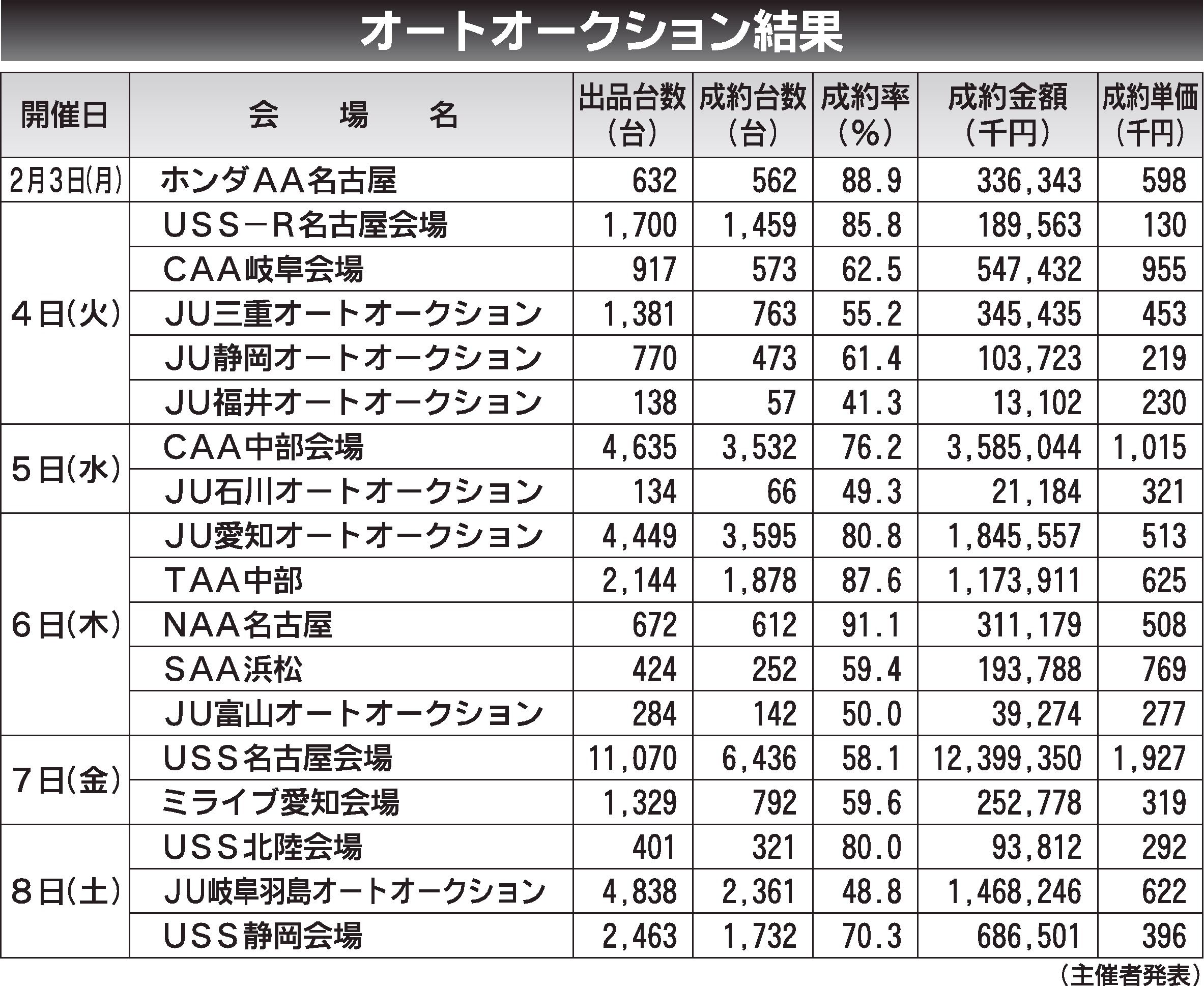 〈オートオークション結果〉中部地区 2025/2/3~8
