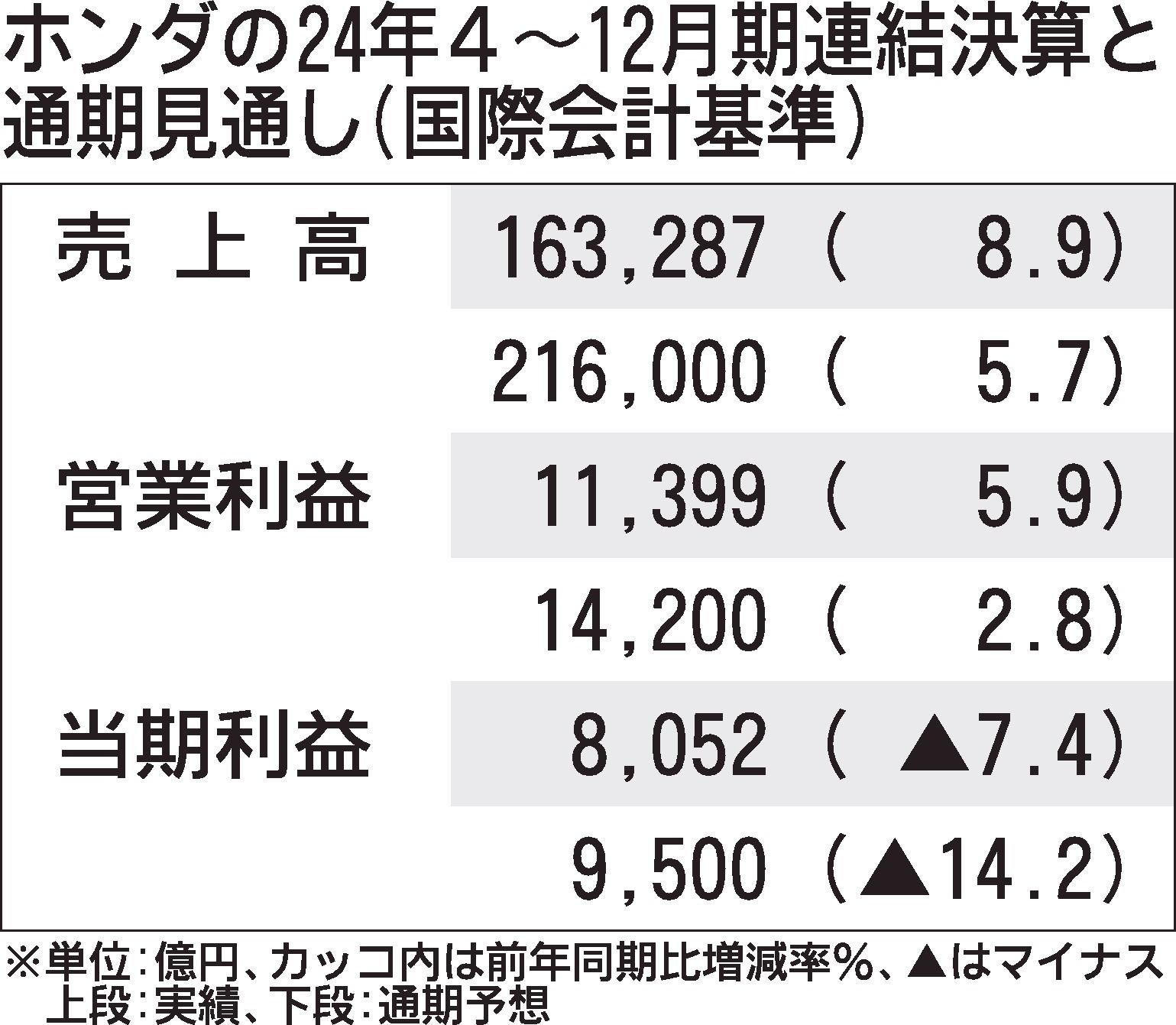ホンダが13日に発表した2024年4~12月期の連結業績は、売上高にあたる売上収益と営業利益が4年連続の増収増益となり、過去最高を更新した。二輪車の販売増や値上げ効果、円安が業績を押し上げた。一方、当期純利益は中国事業の不振によって4年ぶ...